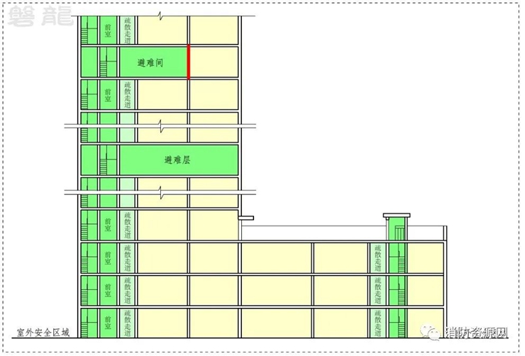 消防安全疏散是火灾条件下人员安全撤离,到达室外安全地点的过程,即到达室外安全区域的过程,室内安全区域是为了解决安全疏散问题而设置的室内安全区间。